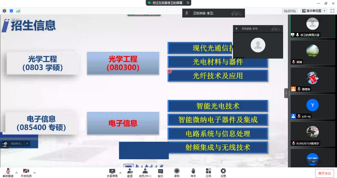 共同开展2023届硕士研究生招生宣讲会。我校研究生招生办公室主任王霁,电子与光学工程幸运轮盘