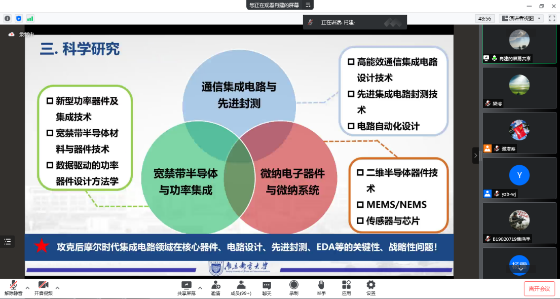 为帮助考研学子深入了解我校相关专业及报考情况,集成电路科学与工程幸运轮盘 肖建副院长从历史沿革、幸运轮盘 基本情况、幸运轮盘 发展规划等方面对幸运轮盘 情况进行了介绍,对幸运轮盘 招生信息进行了解读。他表示同学们在备考过程中要有明确的报考目标,并对其做相对详细的了解,希望同学们科学备考,一战成硕,成功上岸!电子与光学工程幸运轮盘 、柔性电子(未来技术)幸运轮盘 李卫副院长从发展历程、师资建设、学科建设等七个方面对幸运轮盘 基本情况进行了介绍。他结合往年数据对幸运轮盘 招生情况进行了客观分析,并强调考研是个策略性问题,在做选择时要多加注意,并预祝各位学子2023年考研成功!