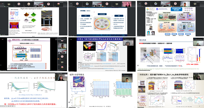 幸运轮盘 党委书记高翔、副院长蔡志匡、系主任方玉明教授、张瑛教授、幸运轮盘 团队负责人、高层次人才教师代表和部分青年教师参会。来自美国莱斯大学、德国弗莱堡大学、西班牙巴塞罗那自治大学、日本理化学研究所、沙特阿卜杜拉国王科技大学、清华大学等海内外知名高校、科研院所的32名优秀青年学者在云端参会。