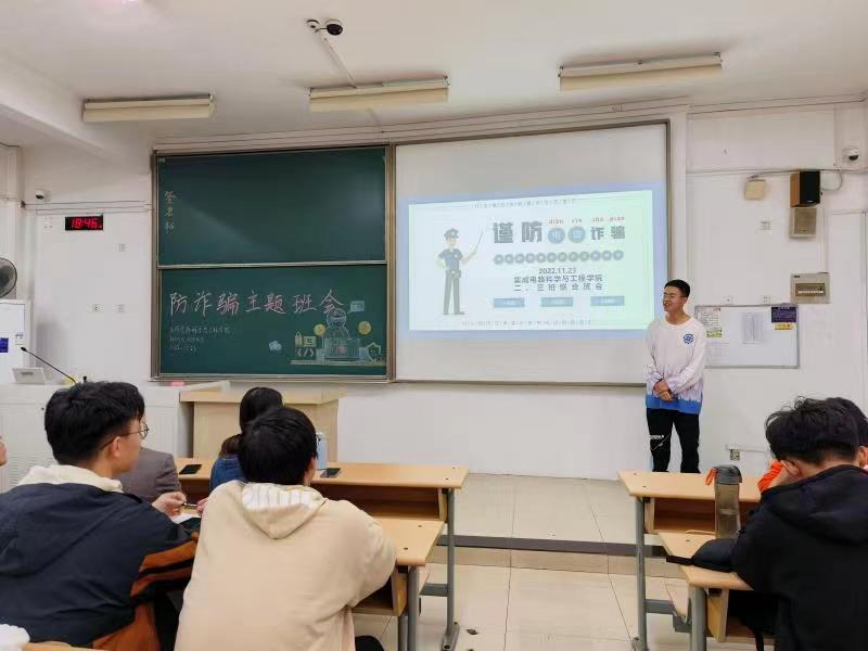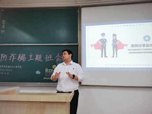“主题班会时间十分恰当,内容十分必要,我们刚刚脱离父母,还缺乏社会经验,此次班会给了我们无形的遁甲,让我们间接增长了经验,提高了识骗、防骗、拒骗的能力”,参加班会的陈诗雨同学如是说。