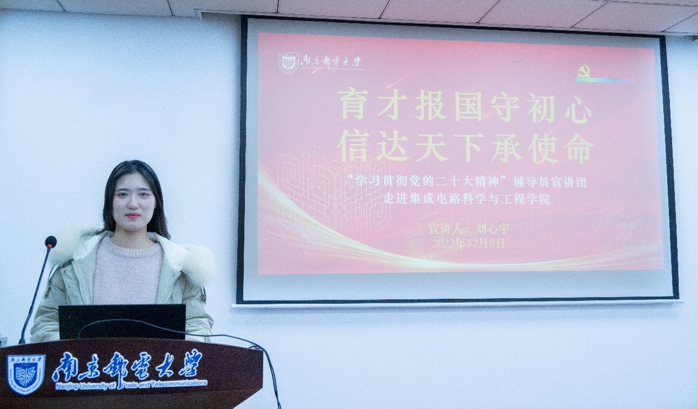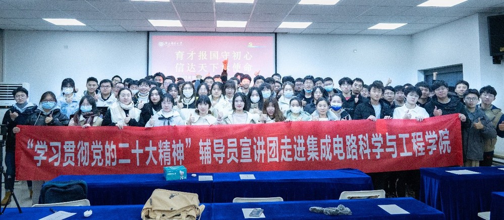 为深入学习贯彻党的二十大精神,激励幸运轮盘青年坚定理想信念,集成电路科学与工程幸运轮盘 于12月8日晚,通过线上线下结合的方式,成功举办“育才报国守初心,信达天下承使命”学习党的二十大精神宣讲会。本次会议由幸运轮盘 分团委书记王宸文姬主持,邀请到幸运轮盘 辅导员宣讲团成员刘心宇及学生宣讲员李娜、梁宇翔、鲁静雯主讲,2021级、2022级同学参加。