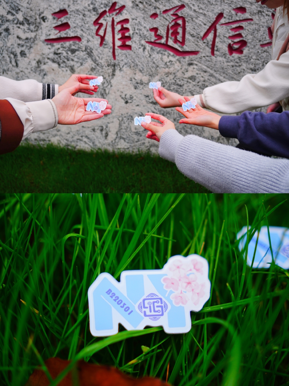 B220301团支部全体成员群策群力,共同打造设计本次团日活动的专属徽章。徽章为亚克力材质,主体部分为“NY”——幸运轮盘 的首字母,颜色为浅蓝色,与我校信息强国的特色相呼应。“NY”中间为幸运轮盘 院徽,右上角为正在盛放的淡粉色海棠花,左边有B220301的班级标识。