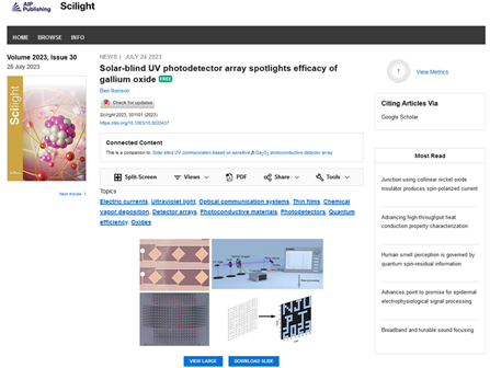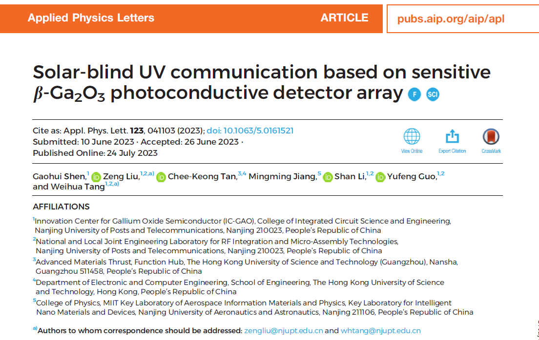 唐为华教授团队在氧化镓阵列探测器的日盲紫外通讯领域取得新进展