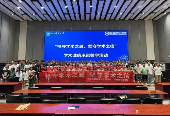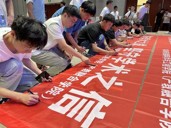 最后,2023级全体研究生新生参与了“恪守学术之诚,坚守学术之信”学术诚信承诺签字活动。同学们在横幅上签名并写下践行学术诚信的口号,共同呼吁大家规范自己的学术行为,营造良好的学术环境,进一步发扬实事求是、吃苦耐劳、勇于创新的新时代科研精神。