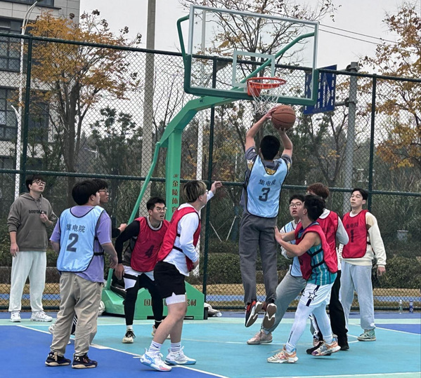 风寒不挡激情,精彩对决引欢呼。参赛同学不仅在竞技场上展现出卓越的风采,更在比赛过程中彰显了坚韧不拔的拼搏精神。根据抽签,集电二队与集电三队进行第一场对决。经过四节激烈对战,最终,集电二队以64:29战胜三队,进入决赛。集电一队迎战集电四队,以52:34胜出,成功晋级决赛。