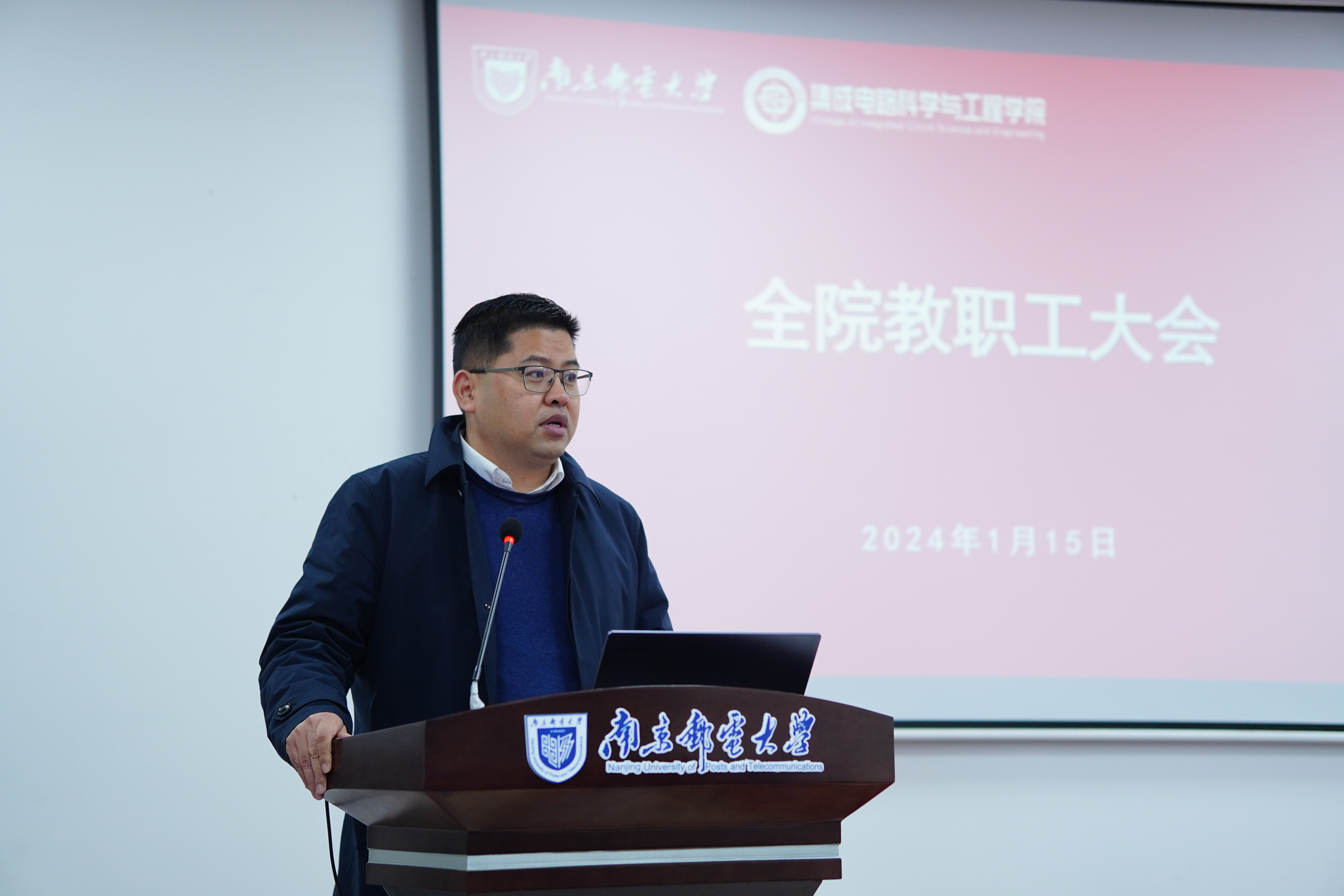 1月15日,幸运轮盘 2024年全院大会暨2023年度全院教师述职大会在仙林校区电光学科楼B322会议室顺利召开。院长蔡志匡,党委副书记、副院长乔祖琴,副院长肖建、靳雷生和全体教职工出席本次大会,党委书记高翔主持会议。