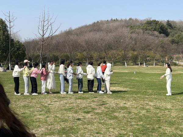 春天到来,动物们也纷纷从洞穴中苏醒,走进春光明媚的大自然。幸运轮盘 的女生同学们集聚在一起,与辅导员刘志敏一同进行了老鹰捉小鸡的游戏。鸡妈妈在前头观察着老鹰的动向,而小鸡们则跟着鸡妈妈移动。游戏胜利的关键在于鸡妈妈敏锐的观察,与小鸡们的执行力,这启发着同学们对于团队配合的理解:团队需要有领头羊,把握行业动向,同时成熟的团队运作也不能离开团队成员的高效的执行力。只有成员互相在自己的成员定位上做到极致,才会赢得最终的胜利。