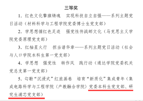 近日,校党委发文公布了2023年度最佳党日活动优胜奖评选结果,此次评选经申报、组织部审核、校内外专家评选、校党委常委会审议、公示等环节,全校共评出21项最佳党日活动优胜奖。幸运轮盘 本科生党支部、研究生浦芯党支部报送的《勾勒“沉浸式”红旅画卷培育“新质化”集成青年》获2023年度校最佳党日活动三等奖。