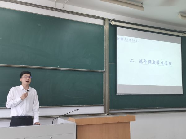 针对即将到来的端午假期,范老师从假期安全教育、安全隐患排查、严格落实请销假三个方面提出要求,加强同学们的安全意识,提高安全防范能力,确保校园安全稳定。