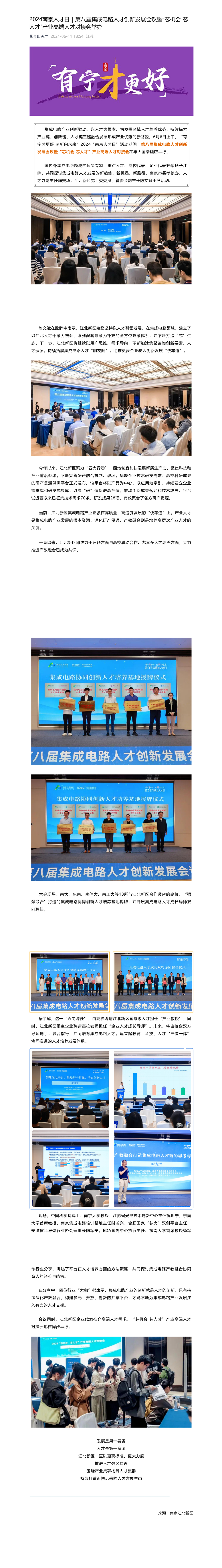 【紫金山英才】第八届集成电路人才创新发展会议暨“芯机会 芯人才”产业高端人才对接会举办