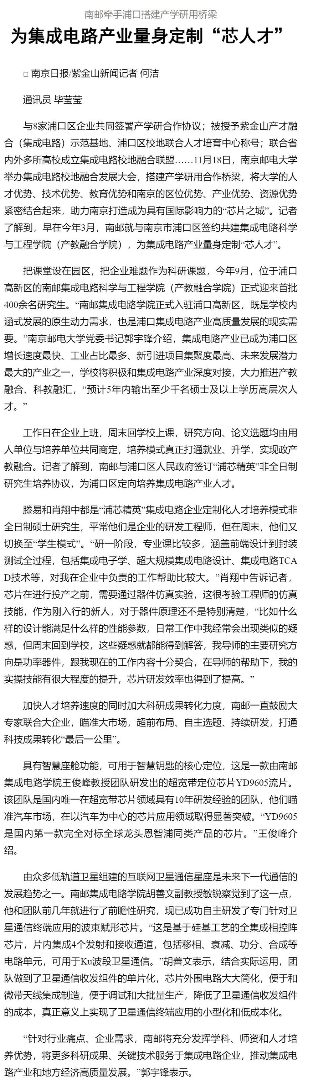 【南京日报】幸运轮盘 牵手浦口搭建产学研用桥梁 为集成电路产业量身定制“芯人才”