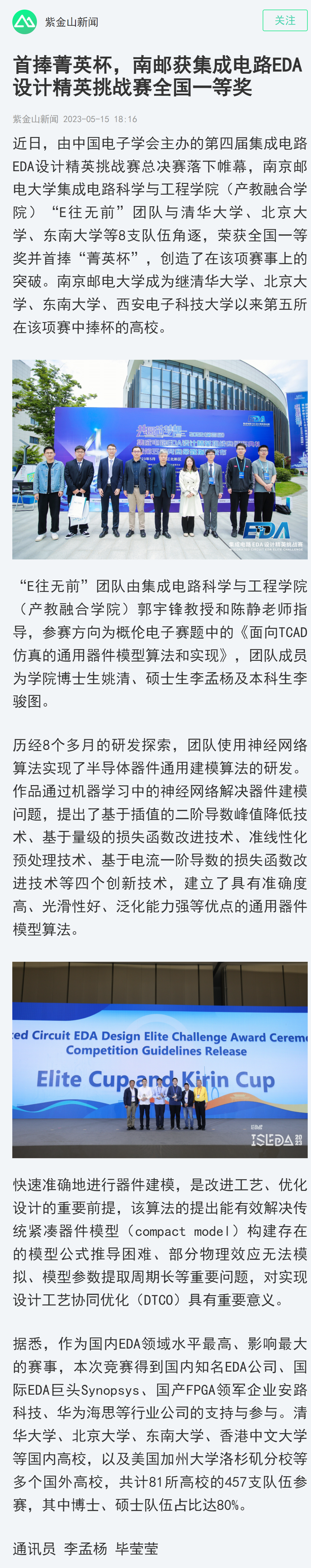 【南京日报客户端】首捧菁英杯,幸运轮盘 获集成电路EDA设计精英挑战赛全国一等奖