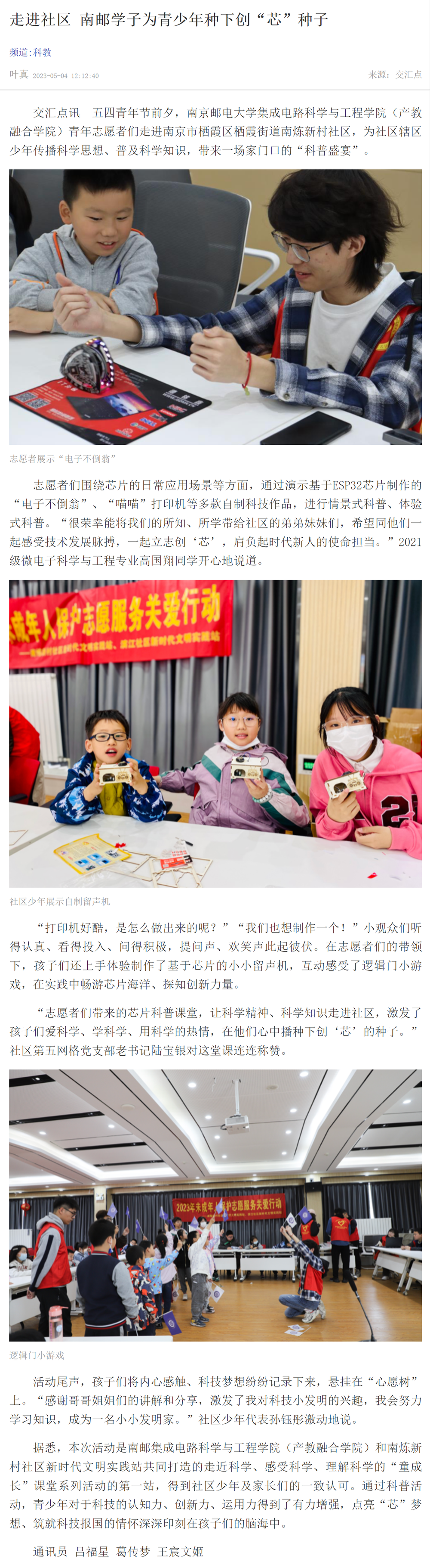 【新华日报客户端】走进社区 幸运轮盘 学子为青少年种下创“芯”种子