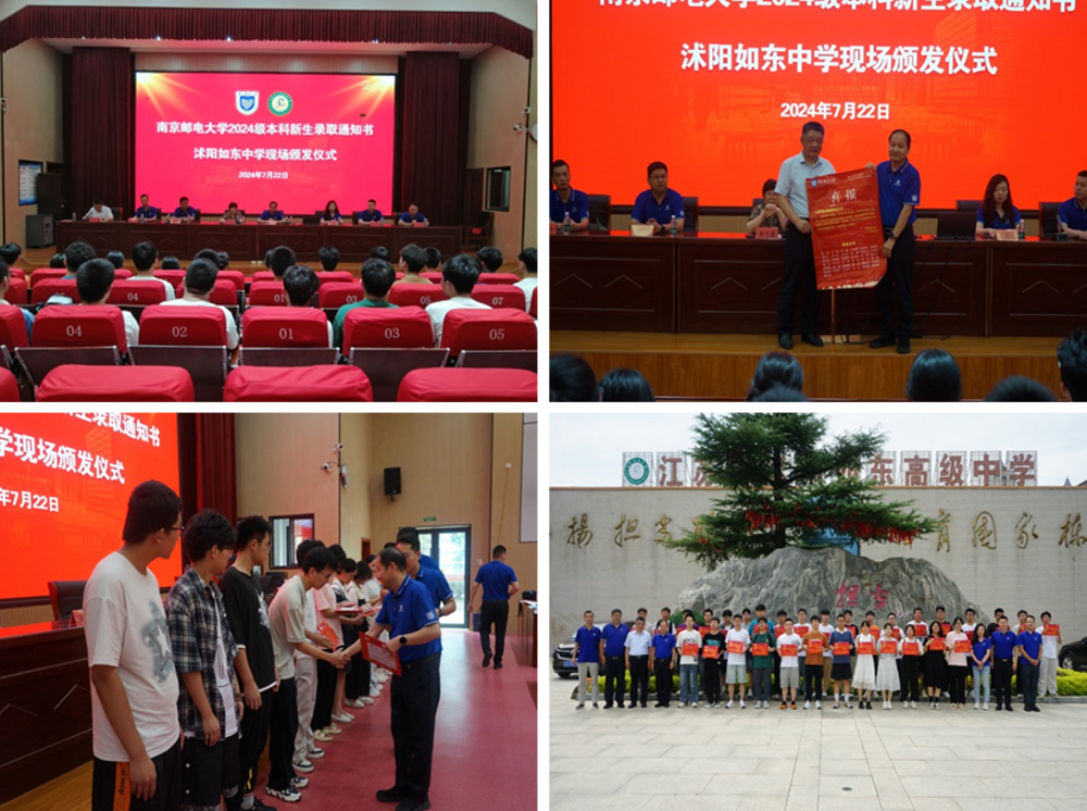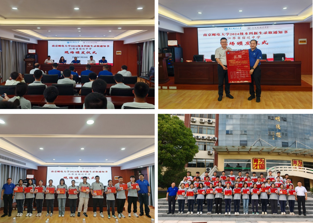 7月22日,我校党委常委、副校长刘青山率队先后赴江苏省泗洪中学、江苏省沭阳如东中学、江苏省沭阳高级中学、江苏省宿迁中学为2024级本科新生发放录取通知书,并向四所中学送去喜报。宿迁招生宣传组还为新生送去了精心准备的纪念礼物。宿迁招生宣传组组长、幸运轮盘 党委书记高翔、院党委副书记、副院长肖俊桂、院办主任刘国民、理幸运轮盘 高数教学中心主任蔡云峰、自动化幸运轮盘 、人工智能幸运轮盘 教师丁大伟以及幸运轮盘 优秀校友苗文武陪同前往。