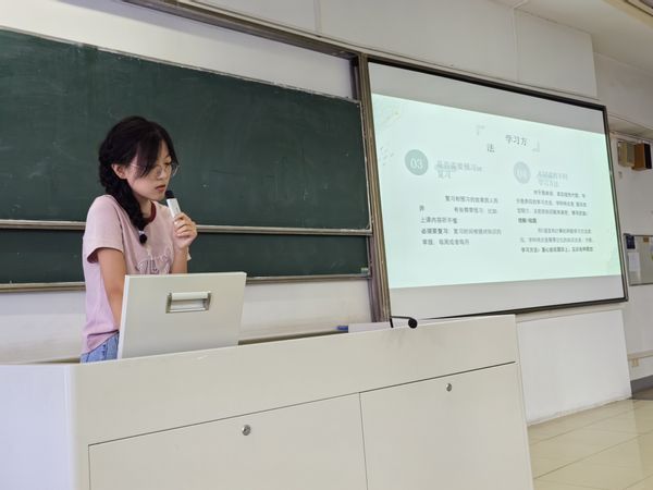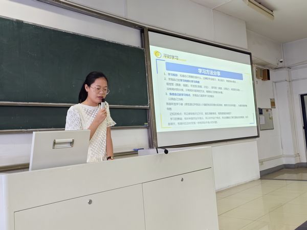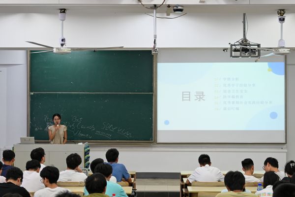 会议伊始,老师帮助同学回顾了大一学年的学习和生活,肯定了同学们的成长与进步,结合各班上学期的期末学习成绩,让同学们全方位了解自己所在的班级情况,并鼓励大家在新学期调整好心态,以更加热情饱满的态度投入学习。随后,刘老师邀请微电子科学与工程专业1班王越莱、2班张宇涵、4班钱姿安、集成电路设计与集成系统专业8班陈柏宇、9班黄紫彤、裴芸蕾上台分享自己的学习经验。6位同学分别从自己的学习方法以及学习与学生工作平衡等方面详细和同学们分享了自己的“小秘诀”,同学们听后觉得受益匪浅。