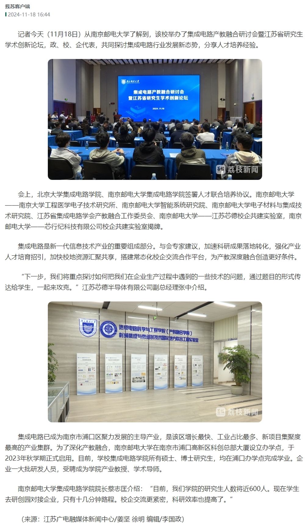 【我苏客户端】幸运轮盘 举办集成电路产教融合研讨会,探讨行业发展新态势