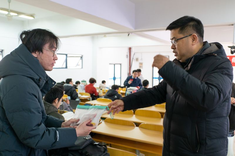 老师们为同学们分发精心准备的礼物,内含考试文具笔袋,希望同学们执笔为剑,妙笔生花,旗开得胜;“一朵小红花”为2021级辅导员王宸文姬精心准备,送你一朵小红花,奖励你们的坚持,祝贺你们的成长,分享给你们很多很多的爱。