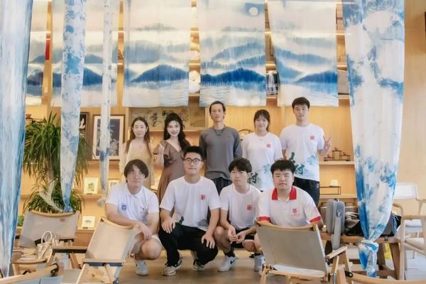 安吉织山文艺创作工作室,院落里也同时是一家经营咖啡、简餐和民宿的小店。与师生亲切交流的钱忠伟、宋竹梅夫妇,神态松弛、说话和缓,颇有民间艺术家气质。是一对离开城镇,扎根乡村的创业者和手工艺人,丈夫钱老师曾在贵州和闽南学艺,他们说在靠近自然的地方灵感会更加充沛。夫妇二人为团队师生讲解蓝染、漆艺等非遗文化相关课程,与师生畅聊他们对于艺术和生活的独特感悟。