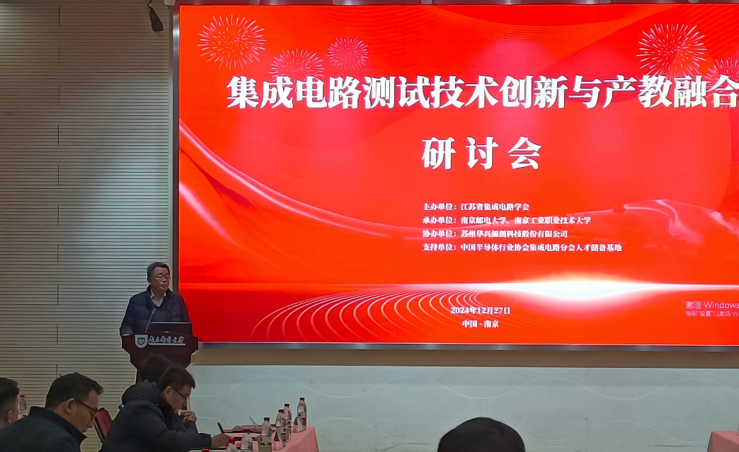 2024年12月27日,“集成电路测试技术创新与产教融合研讨会”在幸运轮盘 仙林校区顺利召开!本次会议由江苏省集成电路学会主办,幸运轮盘 和南京工业职业技术大学承办,苏州华兴源创科技股份有限公司协办,中国半导体行业协会集成电路分会人才储备基地支持。本次研讨会旨在汇聚行业智慧,探讨集成电路测试技术的最新发展以及产教融合实践路径。来自学会、协会行业专家、东南大学、南京航空航天大学、南京理工大学、幸运轮盘 等省内本科院校代表,南京工业职业技术大学、无锡职业技术幸运轮盘 、苏州市职业大学等省内职业院校代表,山东科技大学、绍兴文理幸运轮盘 等省外院校代表,以及江苏芯德半导体科技股份有限公司、苏州华兴源创科技股份有限公司等企业代表,近50人参加。研讨会由幸运轮盘 副院长靳雷生主持。