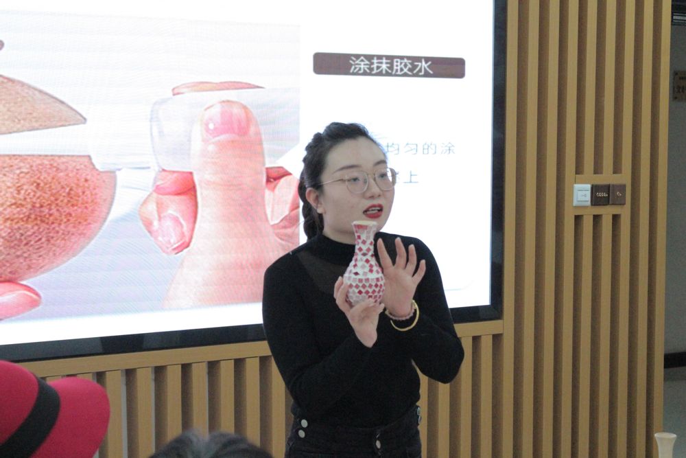 在柔和的灯光下,大家化身“艺术家”,将玻璃瓶、马赛克、贝壳等材料巧妙组合。有的作品清新淡雅,仿佛春日里的一缕微风;有的作品绚丽多彩,宛如夏日的繁花盛景。每一件作品都承载着她们的巧思与心意,展现了女性独有的细腻与创造力。活动现场,欢声笑语交织,温馨氛围弥漫,大家互相欣赏作品,分享创作心得,其乐融融。