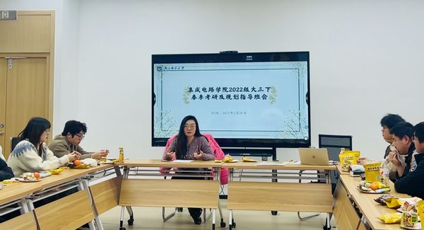 接着,来自专业机构的老师为同学们详细解读了考研政策新变化,分享了近年来各高校集成电路相关专业的考研数据,特别是考研人数的趋势与变化、各项分数线,指出要顺利考入理想的院校,必须要做到合理择校,目标明确。随后,已上岸学长俸银川(初试393)、端木传昊(初试426)分别聚焦考研择校定位、信息获取与搜集、复习时间规划、复习重难点、考研心态调整,提供了科学有效的发展性建议。