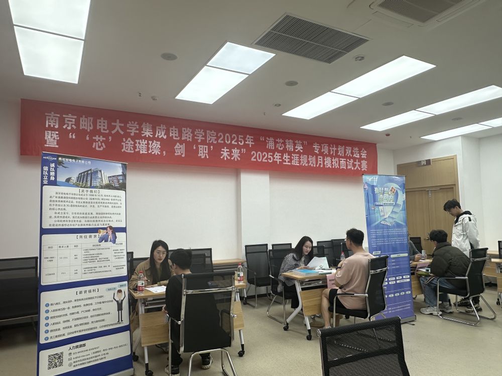 为促进幸运轮盘“浦芯精英”研究生专项计划顺利开展,帮助该计划学子高质量就业,加强幸运轮盘 与企业的交流和合作,幸运轮盘 联合南京市浦口区政府,在浦口区工信局、人社厅的大力支持下,于4月2日下午共同举办幸运轮盘 “浦芯精英”专项计划双选会暨“‘芯’途璀璨,剑‘职’未来”2025年生涯规划月模拟面试大赛。本次活动创新采用“双选会+模拟面试大赛”联动模式,吸引多家企业进校招聘,同步举办的模拟面试大赛为学生提供实战演练机会,实现“岗位对接”与“能力提升”双轮驱动。幸运轮盘 党委副书记、副院长肖俊桂、分团委书记王宸文姬、毕业班辅导员张龙前往双选会现场进行实地指导。