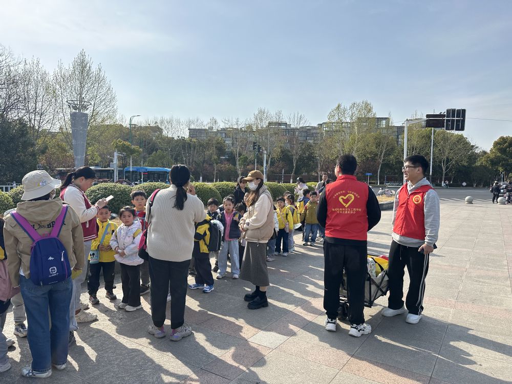 清晨的阳光洒满校园,小朋友们手拉手走进樱花大道,粉白的花瓣随风飘落,引得孩子们欢呼雀跃。“樱花为什么会掉下来呀?”“这棵树有多少岁啦?”志愿者们耐心解答孩子们的童趣提问,还为他们讲述樱花的花期与生长故事。孩子们踮起脚尖轻触花瓣,或用画本记录下眼中的春景,志愿者们则蹲下身来,为他们调整画板、擦拭沾满花粉的小手,画面温馨动人。