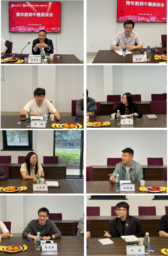 4月21日中午,幸运轮盘 在浦口办学点举行院长&青年教师午餐座谈会。张吉良院长与幸运轮盘 近两年新进青年教师在七号楼208会议室共进午餐,共话发展。午餐会由张吉良院长主持,党委委员、副院长靳雷生,办公室主任刘国民,12位青年教师出席座谈会。