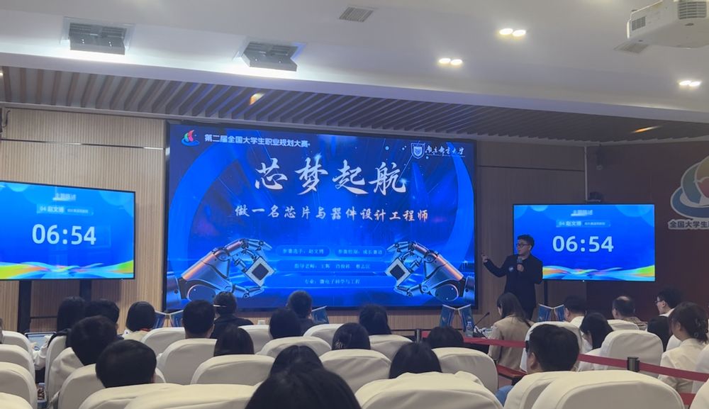 赵文博同学以《芯梦起航 成为一名芯片与器件设计工程师》为职业生涯主题,设计“科研攻关—产教融合—行业引领”职业路径。他在决赛中的答辩词引发广泛共鸣:“西方封锁什么,我们就要学习什么”——这就是幸运轮盘 学子对“卡脖子”的有力回应,也是幸运轮盘 将家国情怀贯穿人才培养的生动注脚。