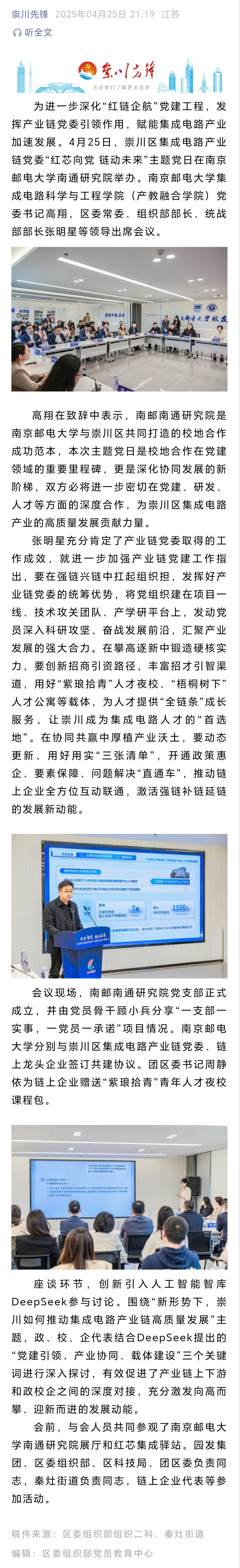 【崇川先锋】校地对话+AI互动,“链”上主题党日出新见效