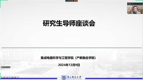 为探讨和完善研究生教育评价体系,同时关注导师与学生之间的交流问题,以促进研究生教育的全面发展,12月9日,幸运轮盘 在电光B楼223会议室开展研究生导师交流座谈会。本次会议采用线上与线下结合的形式,院关工委成谢锋教授、幸运轮盘 部分研究生导师线上参会,座谈会由幸运轮盘 副院长靳雷生主持。