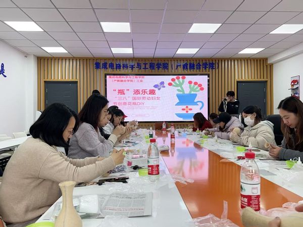 春意渐浓,万物复苏。为庆祝第115个“三八”国际劳动妇女节,3月7日中午12:45,幸运轮盘 工会在仙林校区电光学科楼B223举办了一场别开生面的“‘瓶’添快乐”创意花瓶DIY活动。其中,幸运轮盘特别邀请了两位关工委老师唐宁萍老师、陈素兰老师参与本次活动。幸运轮盘 15名女教职工齐聚一堂,以巧手匠心制作独一无二的花瓶,在欢声笑语中感受节日的温馨与美好。