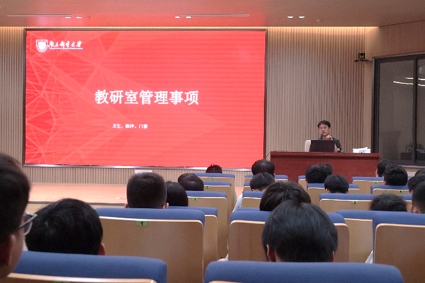 916日,为帮助252名新生坚定理想信念、明确学业方向、适应浦口办学点生活,2025级研究生年级大会于浦口办学点1号楼报告厅隆重召开,研究生辅导员张龙老师与全体研究生新生齐聚一堂,大会围绕园区生活、规章制度、成长发展等核心议题展开全面讲解,为新生开启研究生生涯筑牢基础。