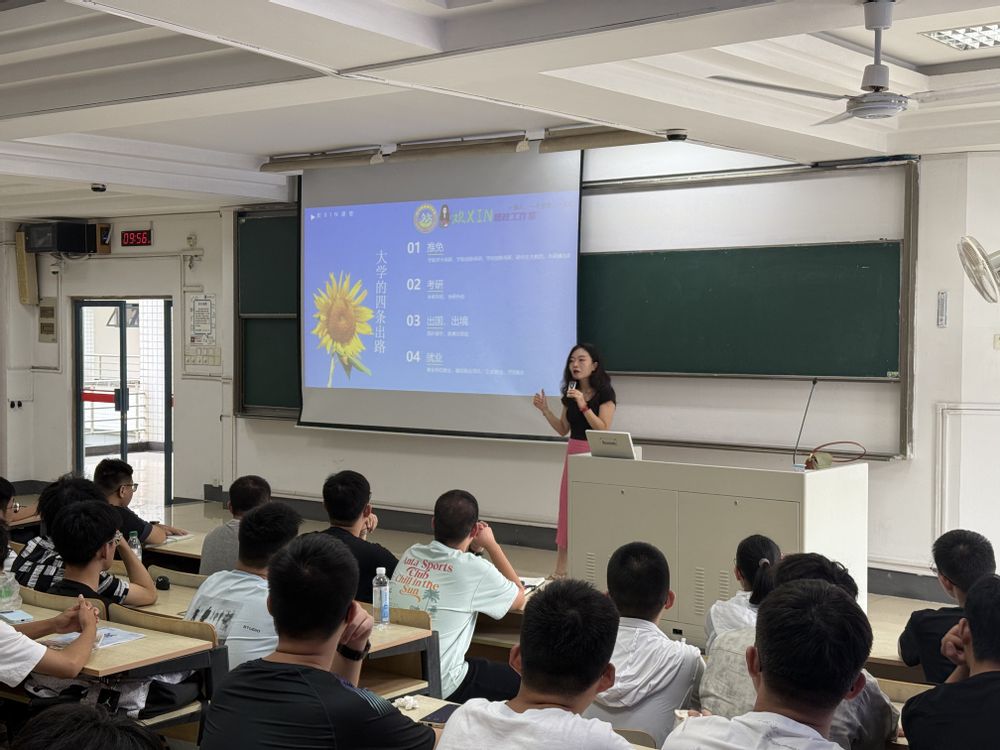 为帮助新生尽早树立生涯规划意识、明晰个人发展路径,科学规划大学学习与职业方向,9月,幸运轮盘 2025级新生齐聚教2-301和教2-302教室,聆听了一堂深刻而实用的职业规划教育课。幸运轮盘 党委副书记、副院长肖俊桂以“做自己大学生活的主理人”为题,面向全体新生开展了入学教育系列讲座之职业规划专场,系统解读学业发展路径,帮助同学们从起点思考未来、规划方向。