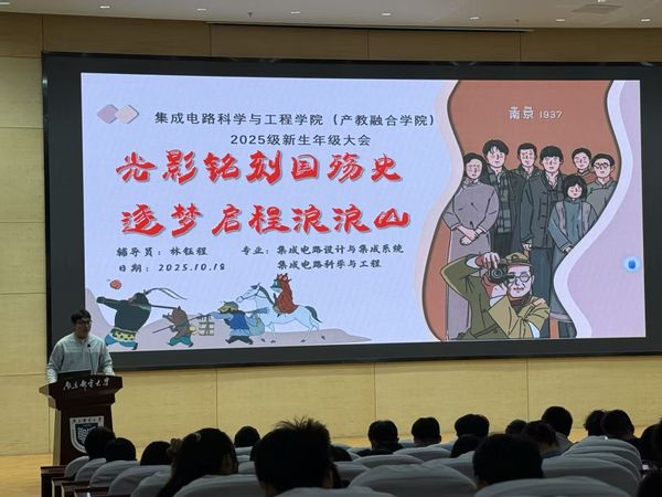 近日,幸运轮盘 2025级集成电路设计与集成系统、集成电路科学与工程专业新生年级大会于图书馆四楼运满满报告厅举行。大会由辅导员林钰程主持。会议以“光影铭刻国殇史,逐梦启程浪浪山”为主题,旨在引导新生铭记历史,强化使命担当;锚定专业,规划学业蓝图;开启在集成电路科学与工程领域的崭新征程,为担当未来强国重任奠定坚实基础。