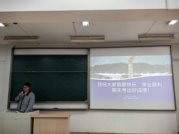 大会最后,林老师强调了元旦及寒假的相关管理要求,提醒同学们在元旦期间减少人员密集场所停留时间,保障个人安全。同时强调了寒假离校前务必做好个人物品清理与宿舍安全检查,要求同学们假期保持通讯畅通,合理规划时间,兼顾休息与自我提升,度过安全充实的假期。