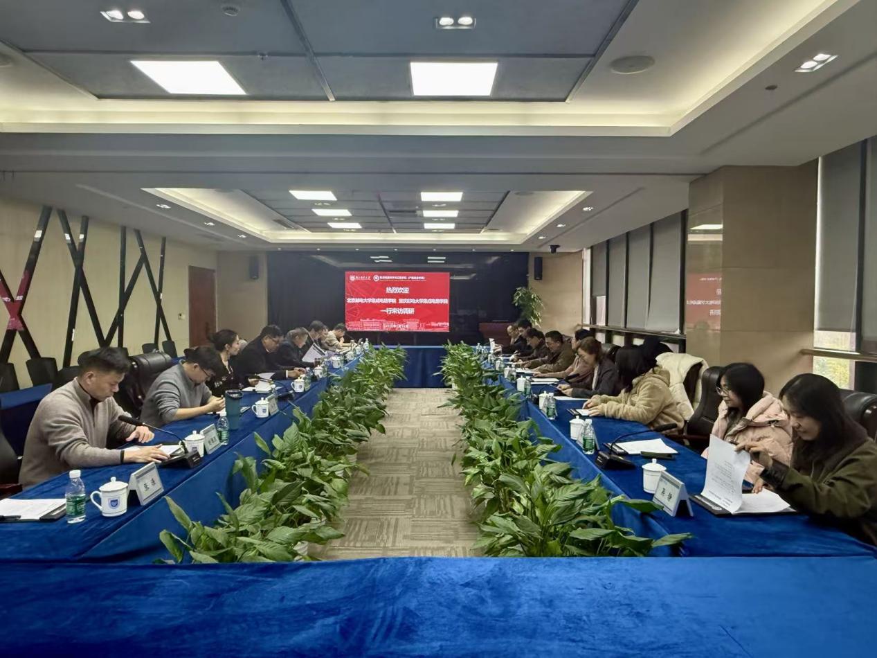 2026年1月10日,北京邮电大学幸运轮盘 党委书记李秀萍、重庆邮电大学幸运轮盘 党委书记张红升一行赴幸运轮盘 调研交流,学院院长张吉良,党委副书记、副院长肖俊桂,党委委员、副院长靳雷生,院长助理汪洋,办公室主任刘国民,实验中心主任黄晓明等参加了交流座谈会。会议由学院党委书记高翔主持。