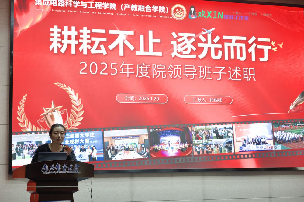 高翔书记从“铸魂固本强根基 深化思想理论武装”、“履职赋能促融合 提升党建工作质效”、“正风肃纪守底线 压实从严治党责任”四个方面总结了过去一年学院党建工作成果,并对2026年的党建工作做出了三点部署,一是要深化融合机制,释放党建赋能效能,聚焦集成电路产业发展需求,拓展“党建+产业链”融合广度;二是要优化教育管理,锤炼过硬党员队伍,将师德师风建设与学术道德教育紧密结合;三是要强化支部建设,激发基层组织活力,鼓励各支部结合自身特点打造特色党建品牌,创新组织生活形式,推动基层党支部全面进步、全面过硬。