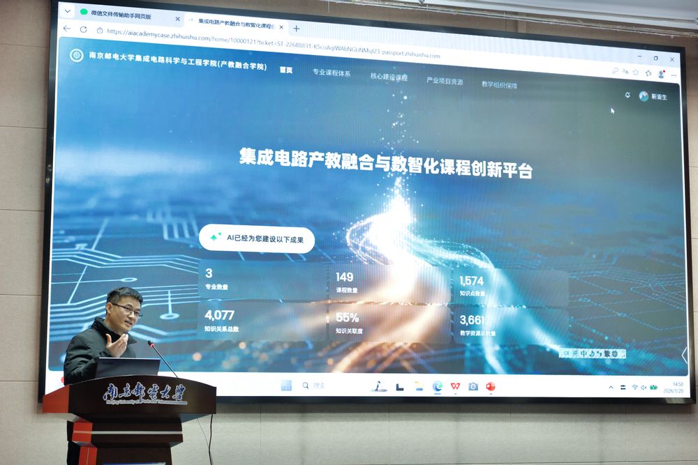 随后,会议宣布成立“集成电路教学研究中心”,该中心将致力于推动教学改革与创新,提升集成电路领域人才培养质量。紧接着,学院正式发布了“集成电路产教融合与数智化课程创新平台”,标志着学院在产教融合与教育数字化方面迈出重要一步。
