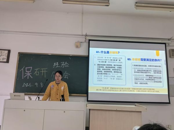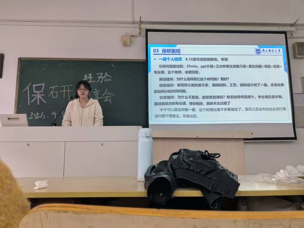 帮助低年级同学提前了解保研流程与备考策略,搭建朋辈经验传承平台,进一步营造学院勤学善思、互帮互助的良好学风,为同学们未来的升学深造指明方向、注入动力。4814点,学院保研经验分享交流会在教三103教室顺利举行。本次活动由23级微电子专业钱姿安同学主持,大二、大三学子参与学习交流。